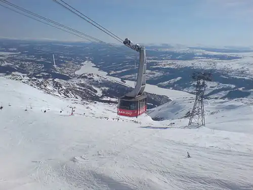 The ski area is on the Åreskutan mountain with its highest peak at a height of 1420 m, but the highest lift ends at 1260 m, so the peak has to be reached by a snowmobile lift. The village and ski area are accessible by bus and train.