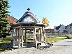 746). Built in baroque style, in 1734, during the great plague. Main facade deorated with arched niche and a damaged statues of the Holy Trinity. The square-shaped chapel is closed with arch apse. Wooden bell tower is decorated with graceful helmet.