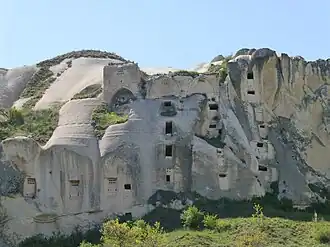 Ürgüp is a town in Cappadocia in central Turkey, in a landscape of soft volcanic tuff that has eroded into hoodoos or "fairy chimneys", and that has been excavated into cave dwellings. In 2022 the population was 24,600.