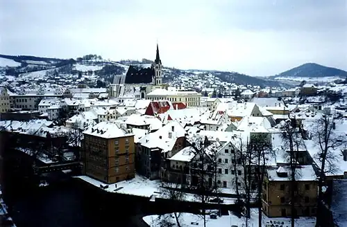 Český Krumlov (German: Krumau) is a beautiful town of 14,600 inhabitants in Southern Bohemia, in the Czech Republic. Like Prague, the town is situated on the Vltava River and is full of Baroque buildings housing cafes and bars, features a spectacular castle (the second largest in the Czech Republic), and an old-town square. The town's appearance is little changed since the 18th century and the buildings have been well maintained and restored. In 1992, Cesky Krumlov was added to the UNESCO World Heritage List. The town is very popular among tourists, who outnumber the local population in the summer and are still a notable presence during Christmas time.