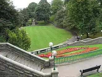 - 🌍 Union Terrace Gardens, Union Terrace AB10 1NJ. A small city-centre park and sunken garden on one side of Union Terrace. A small river, the Denburn, used to flow here but is now covered by the railway. The gardens are a haven of tranquility and greenery in the city-centre. In summer look out for the floral coat of arms, and in warm weather citizens sunbathe and picnic on the lawns. All year round, the gardens give a good view of the surrounding architecture. From 2010 the park was threatened with grandiose redevelopment plans, but in 2012 the council scrapped this idea. A more modest plan was undertaken for £28.3 million and the park was closed from 2019 -2022. Free.