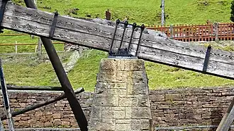 - Wanlockhead Beam Engine is in the stream valley just below the village. Installed around 1870, it was powered by water from the stream and drained water in buckets from the lead mines. With 2 or 3 cycles per minute, it lifted some 7000 litres per hour at zero energy cost, and "Bobbin' John" could be left unattended to work around the clock. It seems to have been a supplementary pump to drain unused parts of the mine, and prevent them flooding the active workings. Most such engines were converted to steam but this one continued until mining ceased in 1928. It's nowadays static, but there's a working model in the village museum.