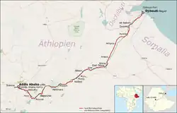 The railway line connecting Addis Ababa with the port city of Djibouti, via Dire Dawa opened in 2016/17. Journey time is about 6.5 hours from Dire Dawa, a mandatory overnight stay and another 12 hours to Addis and as of 2024 there is a train every second day. Tickets can be bought at the railway station or at a ticket office next to the old colonial Legehar station (a portmanteau of the French name for station, la gare) on Churchill Ave.