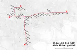 - North–South blue line 2 is from Kality station to Menelik II Square station (aka Piazza).