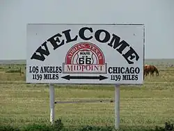 Adrian is an incorporated city in the Texas Panhandle with a population of about 140. The tiny city promotes itself as the "Midpoint of Route 66", a highway which once led from Chicago to Santa Monica.