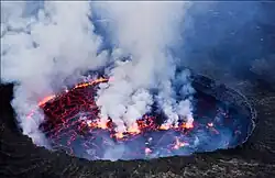 - Mount Nyiragongo (3470 m) in the DRC on the Rwanda border is one of just 3-4 volcanoes in the world with a lava lake in its crater. A climb takes about 8 hours and involves camping on a ledge at the top – a safe 700 m above the lake – for the night (of course, the steaming, bubbling lava is more spectacular at night).