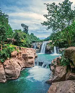 - Salto de Malacatiupan (Hot spring waterfalls), La Coyotera (a short taxi ride north of Ahuachapan). Beautiful waterfalls and natural pools with steaming hot mineral waters, fresh from the region's many hot water springs and geysers. Hike the trails and bring a picnic lunch to enjoy by the beautiful waterfalls. Signs prohibit swimming and diving, which locals and tourists alike did frequently until a couple people died diving into waters they didn't check beforehand and others died swimming beneath the lower series of falls where a powerful hydraulic pulls swimmers under water. You sometimes find cattle swimming in the warm river currents (cows are notorious scofflaws, ignoring signs with impunity).