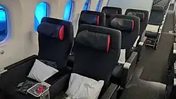 - Although legacy US carriers (Delta, United, American) designate their highest class of service as first class on most domestic flights, first class seating comparable to what is offered on long-haul flights is typically found only on selected transcontinental routes. Other flights with domestic first class seats typically resemble short-haul business class seats in Europe or Asia.