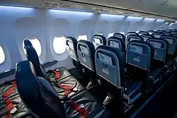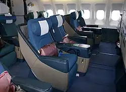 - Regional business class seats vary considerably. They can either be proper two- or three-seater blocs with a considerably larger amount of recline (sometimes angled lie-flat) and legroom compared to economy class, or make-shift seats which may be designated as (regular/standard) economy class seats on some flights. If a carrier uses the latter variant, the middle seat will be empty and a device may be used to slightly widen the other two seats when the row those seats are in is designated as a business class row.