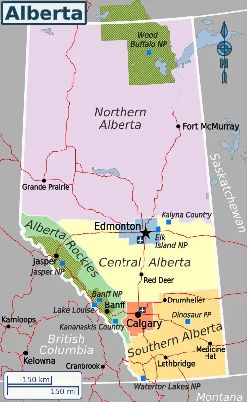 Alberta is a huge province, about three times the size of the United Kingdom (from where many of its people can trace a heritage) or nearly as large as Texas (with which is shares a historic connection though the cattle and petroleum industries). In this huge expanse of territory, only four and half million Albertans reside, and about half of those live in just the two main cities of Calgary and Edmonton, with most of the rest of population clustered near the main highways. The rest of the province has a tiny population, but is far from empty: on this land you will find Indigenous cultures that have survived here for thousands of years, rural settlements with a proud pioneering history, and new immigrants arriving daily from all corners of the world in one of the developed world's wealthiest and fastest-growing regions.
