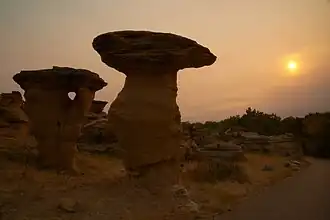 πDrumheller - the dinosaur-lover's mecca, site of the Royal Tyrell Museum, the largest paleontology museum in Canada, set in the desert-like "badlands" landscape.