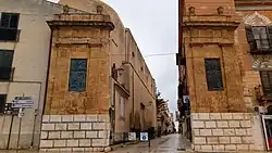 - 🌍 Pia Opera Pastore, Via Pia Opera Pastore (next to Porta Trapani). Designed by the architect Giovan Battista Palazzotto in 1872, the building is in a neoclassical style, with triangular windows. On the main door, there is the family coat of arms represented with a sheperd's crook, three stars and a tower.