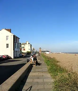 Aldeburgh (pronounced /ˈɔ:lbrə/ (ALL-bre)) is a coastal town in east Suffolk, England. It has a long pebble beach, fresh seafood, several curious landmarks and an interesting history of survival against being swept away by the North Sea.