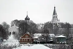 - Further buildings: church of Theodore Stratelates (надвратная церковь Феодора Стратилата: 1682, over-the-gate), church of the Presentation (церковь Сретения Господня: 1682, a small stocky building in Russian style), living chamber (келейный корпус: 1682, rebuilt in 19th century), and a number of small buildings from 18th – 19th centuries. These buildings are pretty regular, since they were constructed after the decay of the prince residence, as regular churches and houses in a regular monastery.