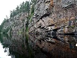 Cliffs along the Barron Canyon. Some visitors will experience the canyon from the top looking down by hiking the Barron Canyon Trail. Others see the cliff face from a canoe in the Barron River.
