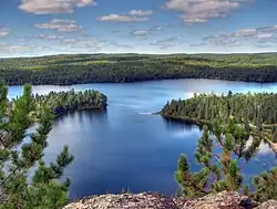 • 🌍 Grand Lake (Hwy 17). In the northeast corner of the park, Grand Lake provides backcountry campsites on its southern shore. From Grand Lake, you can also access Carcajou Bay to see waterfalls flowing over granite, or portage to the Barron River and Barron Canyon. Achray Campground is located here, so visitors can combine daytime canoeing with car camping, in a more remote location than the Highway 60 corridor. OSM directions target=_blank