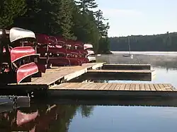 • 🌍 Canoe Lake (Hwy 60). A large, busy lake along the Highway 60 corridor, connecting to several canoe routes and served park facilities along the highway. It's also an important location in Canada's artistic history. A ghost town toward the north-west shore of the lake, Mowat, was a company town for a sawmill that opened at the end of the 1800s with a population of 500. After the sawmill closed, the isolated town become a small tourist retreat, attracting Tom Thomson, an influential artist who worked with a group that would go on to form the Group of Seven. Before the founding of the group, Thomson drowned here in the summer of 1917 at the peak of his artistic career. A cairn stands on the lake, opposite from the Mowat town site, but his resting place is in Owen Sound. OSM directions target=_blank