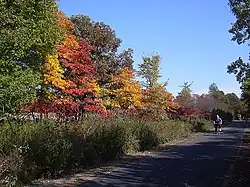The Fred Meijer Heartland Trail, a paved converted railroad line, connects Alma to the hamlets of Elwell and Riverdale to the west. It is expected that the trail will soon be completed between Riverdale and Edmore, which will make the trail one of the midwest's longest uninterrupted paved trails, reaching from Alma to Greenville. Area residents frequently utilize the trail for bicycling, jogging, walking, and inline skating.