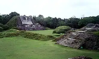 Altun Ha are the ruins of an ancient Maya city in Belize, in the Belize District about 30 miles (50 km) north of Belize City and about 6 miles (10 km) west of the shore of the Caribbean.