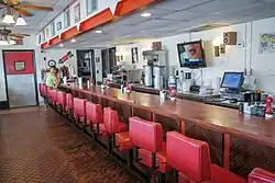 Diners are a classic piece of Americana, seen in countless films, TV shows, and even classic American art. They've somewhat fallen by the wayside in favor of fast food and fast-casual chains, but are still found in the middle of big cities, in the suburbs, and out in the country near well-traveled highways, a few still bearing the classic sign from a less literate era that simply says "EAT" in large letters. A few chains, particularly Denny's and Waffle House, have standardized the diner experience, but in most parts of the country independently owned diners are still common.
