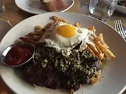 "New American" or "Modern American" cuisine is something of a catch-all term for a style of American fine dining that's been growing in popularity since the 1980s. Inspired partly by French Nouvelle Cuisine, by way of California Cuisine, it tends to be a fusion of a wide variety of cooking techniques applied to traditional American food, and also often infuses flavors from other parts of the world like Latin America and Asia as homage to the diverse origins of modern-day Americans. In contemporary times, it's sometimes associated with the "local food" and "farm to table" movements, so expect to see a lot of seafood near the coasts, local beef, pork, and poultry in major agricultural areas, and whatever vegetables are common to the local region and season. Quality of ingredients is emphasized: expect wild-caught fish, grass fed beef, free-range poultry, wild-gathered mushrooms, and organically grown, "heirloom" varieties of vegetables. In some cases this has caused controversy, for example, Appalachian residents quietly enjoyed a species of wild leeks known as "ramps" for decades, until they suddenly became popular among trendsetting big-city chefs and now can be hard to find in their native range.