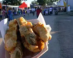 - Chicken – fried chicken is very popular, roasted or rotisserie chicken almost as popular. Chicken wings, particularly Buffalo-style ones which are oily and spicy, are a popular bar snack or meal.