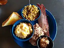 African-American cuisine is intertwined with the cuisine of the Deep South, with influences from African, European, and Native American cuisines. This style of cooking is known as "soul food". Some signature African-American dishes include sweet cornbread, black-eyed peas, macaroni and cheese, fried okra and fried chicken and waffles. Restaurants serving soul food can be found not only in the South but also in Northern cities with large African-American populations, and Chicago has even developed its own unique style of barbecue in the African-American neighborhoods.