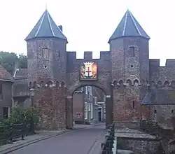 - π Koppelpoort. Probably the best preserved city gate in the Netherlands. It is the northern city gate of the second wall and a dual water and land entrance to the city, built over the river Eem, which begins under the gate.