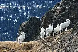 The Anchorage area is home to moose, brown and black bears, Dall sheep, and many migratory bird species. A visitor should be able to find moose fairly easily by driving any neighborhood on Anchorage's Hillside (actually the foothills of the Chugach mountains). It is not uncommon to hear of bears being spotted in residential areas, but visitors who hope to see wild bears should plan excursions to either Denali National Park or Katmai National Park. Dall sheep, a species similar to the big-horn sheep found in the American Rockies, can often be spotted by driving down the Seward Highway south of Anchorage. A good way to spot sheep is to notice congregations of other tourists photographing them. A good place to view waterfowl and eagles is the Potter Marsh boardwalk, immediately south of Anchorage on the Seward Highway.