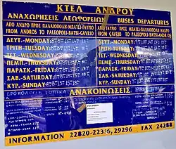 Bus timetable for journeys between Gavrio and Chora Andros (August 2018)