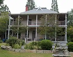 - 🌍 Utica Mansion, 1103 Bush St. The Utica Mansion is a historic house that was built in 1882 as a two-story stone building designed in the Federal style. Robert Leeper, then owner of the Utica Mine, built the house next to the Utica Mill. Leeper sold the mine to C. D. Lane in 1884; he sold the house to Lane four years later. Lane and two other investors began to buy up mining claims in Angels Camp, and their enterprise soon became profitable. With his investment earnings, Lane began to expand the Utica Mansion. Lane added a two-story addition to the west and north sides of the house and a veranda on the other two sides. He also improved the interior furnishings by adding new wallpaper and fireplaces with English tiles, repainting the woodwork, adding gold moldings to hanging pictures, and installing Axminster carpets. Lane lived in the house until 1895, when he left to pursue an investment in Alaskan mining. It was added to the National Register of Historic Places in 1984.