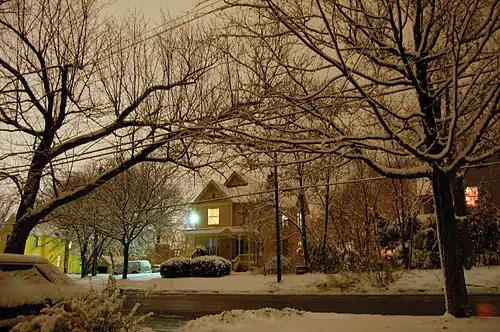 Ann Arbor, or Tree town, is, as one might expect, full of trees; they line the streets, and in summer from the air, or year-round in Google Earth, all that can be seen is a green swath with a few buildings sticking out. (In the early 20th century, after having leveled the forest that once occupied the area, the city instituted an aggressive tree-planting program that's since borne fruit.)