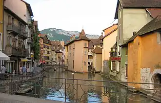 Annecy, in the north of the French Alps, is called "the Venice of Savoie" — a well-deserved title. The medieval town centre built around a 14th-century chateau is dissected by small canals and streams running out of Lac Annecy, which is clean, fresh and a wonderful azure colour. Annecy is the prefecture of the département of Haute-Savoie.