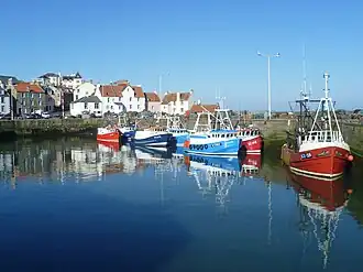 Anstruther is first documented in 1225, when already its fishing was important enough to be the basis of a feud with the monks of Dryburgh Abbey. The Pope himself had to intervene, possibly the first involvement of a pope in a fish fight since the miracle of the loaves and the fishes. "Struther" comes from Gaelic sruthair, a stream, referring to the Dreel Burn which divided the community into Anstruther Easter (the larger) and Anstruther Wester. These grew together in modern times, but after 1936 the shoals of herring disappeared from traditional fishing grounds. Anstruther never had the industry of the more westerly villages near the coalfield, and was too far from the cities to become a commuter town, so its picturesque centre was never re-developed on a large scale. For most of a century it's been an attractive resort with small-scale fishing and leisure boating.