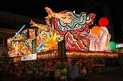 - Aomori Nebuta Festival (青森ねぶた祭り aomori nebuta matsuri). August 2–7. This is not only Aomori's but one of Japan's most famous festivals. The town suddenly becomes very lively, with many street stalls. The main feature is the evening parade with huge illuminated paper lanterns featuring scenes from famous kabuki plays and famous Japanese legends being pulled through the streets while costumed dancers dance around them. It was thought to have originated as a Tanabata Festival with small lanterns and gradually grew over time. Althought today the floats are lit by incandescent lightbulbs, it's still called a "fire festival" because the lanterns were originally lit by candles. The night parades run from August 2-6, and on the final day, August 7, there is a daytime parade that concludes with an extensive fireworks display while some of the Nebuta lanterns float around the bay on boats. Everybody can join the parade, as long as they wear the festival costume. To rent the costume, enquire at the tourist center next to the train station..