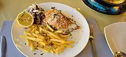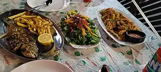 For local seafood, head to the Al-Afran street (locally known as the "fishmarket" or "Souq As-Samak"), which is located near the citadel and the beach area. The street is lined up with dozens of local fish shops ("masmakeh" in Arabic) that sell all kinds of seafood, and the majoity of customers are locals. In most shops, you can select your preference from the fresh catch of the day and specify how you want it to be cooked (e.g. grilled or deep-fried). You can also select standard meals from a fixed menu, such as sayadieh. Prices will vary according to the selected fish, but usually range from 5 to 10 JD per person. As of 2022, there's a new fishmarket building under construction just south of the citadel, to which some of the shops may relocate in the future.