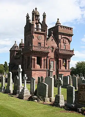 - π Arbroath Western Cemetery has the usual collection of 19th and 20th century funerary art, plus Commonwealth War Graves from both world wars. But its most remarkable feature is the mortuary chapel, built from 1875 in an astonishing mix of styles. You can visit within Apr-Sept Sa 3PM, adult Β£10, child free.