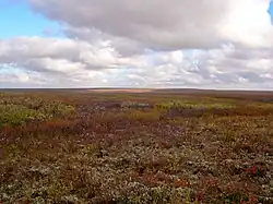 Much of the vegetation is tundra, where only the uppermost layer of soil thaws in summer and no deep-rooted plants can thrive. As evaporation is low in the cool, bogs, mires and lakes are common. There are also areas with just lichen and other hardy species growing on the rocks – and areas covered in perennial ice. Still, in the short summer, there can be an amazing wealth of flowers, insects and birds, and some regions are home to caribou, reindeer, musk oxen and the like, a number of smaller mammals like the lemmings, and Arctic foxes, wolves and bears.