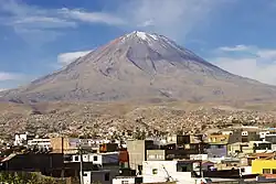 • Chachani 6,057 m above sea level. Arrange transport with one of the adventure tour guides in town and be prepared for a 2-hour bumpy, swerving, scary drive around sharp curves up steep mountain roads. The base camp is at slightly over 5,000 m and the views are spectacular. If you are well-acclimated and have gear (ice axes and crampons) you should be able to summit from high camp in just over 8 hours. Otherwise just hike up the switchbacks to high camp (don't stay there, you can't sleep well at that altitude. Heed the mountaineer's motto: "Hike high, Lie low") and then on to the col, from which you can see the beautiful view of Arequipa and surrounding mountains. The trek beyond can be dangerous if you're not an experienced mountaineer. If you are, be prepared for a tough slog up dangerous scree and a trecherous traverse, and make sure you feel up to the return trip.