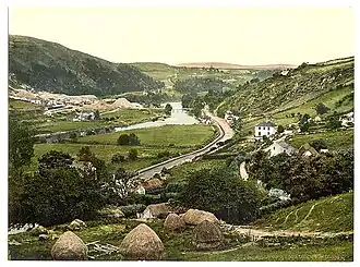 - Vale of Avoca north of the village is a scenic glen. The river is formed from the confluence of the Avonmore (Abhainn Mhór, "big river") and Avonbeg (Abhainn Bheag - go on, guess) at the "Meeting of the Waters", extolled in song by Thomas Moore in 1808. But there has long been copper mining in this area, resulting in pollution and scars on the landscape. The mines closed in 1982 when the price of copper collapsed. The old buildings and machinery are not safe to explore and there are some very deep pitfalls, and the workings continue to leach pollution.