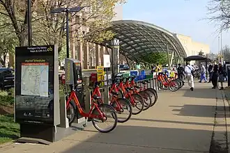 Capital Bikeshare has many bike stations in Arlington, mostly within a few blocks of Metro stations.