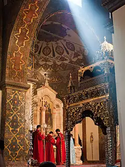 The Armenian Apostolic Church, part of the Oriental Orthodox communion, is the state religion and adhered to by about 95% of the population, though freedom of religion is generally respected. When visiting churches, you are expected to dress modestly (i.e. no shorts, miniskirts, sleeveless shirts/tops), men are required to remove their hats, while women are required to cover hair with a shawl or veil. Since entrance is free, lighting a candle can be a nice, but completely optional gesture.