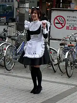 A more distant incarnation of the same idea are maid cafés (メイド喫茶 meido kissa or メイドカフェ meido kafe) and other cosplay restaurants. Catering mainly to otaku (nerds), employees dressed as French maids pamper their clients while serving them non-alcoholic beverages and food, all usually decorated with syrup (except dishes like the popular omelette rice, which is decorated with ketchup).