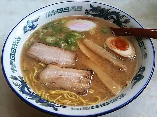 - 🌍 Santōka (山頭火) (from Kaimono Koen, turn right at the narrow street that divides the two Seibu department store buildings, the shop is at the next junction, on the left hand side), ☏ +81 166 25-3401. 11:00-22:00. The original shop of a popular ramen shop that has opened several branches in Tokyo and overseas. Shoyu ramen ¥800.