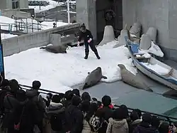 - 🌍 Asahiyama Zoo (旭山動物園), Higashi Asahikawacho Kuranuma (take Asahikawa Denki Kido Bus for Asahiyama Zoo at Bus Stop No. 5 in front of Asahikawa train station; bus departs hourly and the ride takes about 40 minutes; there is another bus from the airport, also hourly, that takes about 35 minutes), ☏ +81 166 36-1104. Summer 09:30-17:15, winter 10:30-15:30, closed April 8-April 28, October 19-November 2. The most famous zoo in Japan and the second most visited. This is a small zoo with a few enclosures. The star attractions include the polar bear enclosure where the bears can be seen underwater, the seal enclosure that where you can get seals all around you, and the penguin enclosure including a glass tunnel through the pool. ¥820, season ticket ¥1200.