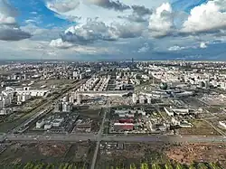 The new town is along the southern bank of Esil, and has a city plan similar to an immense hippodrome. At a river bend, on a small hill is the presidential palace. Across the river from it is the Khan Shatyr recreational center, formed like a sail. The backbone of the hippodrome is the wide Nurzhol Bulvar, that connects the presidential palace with Bayterek Tower and is lined by different government buildings.