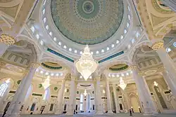 - 🌍 Nur-Astana Mosque (Астана Мешіті), Qabanbay Batyr Ave 36, ☏ +7 7172 44 61 65. The second largest mosque in Astana and the third largest in Central Asia, completed in 2008. The dome area contains symbols from all over the world like the Statue of Liberty, the fragment of the great Chinese wall, the "Doriphor" statue, Parthenon and others.