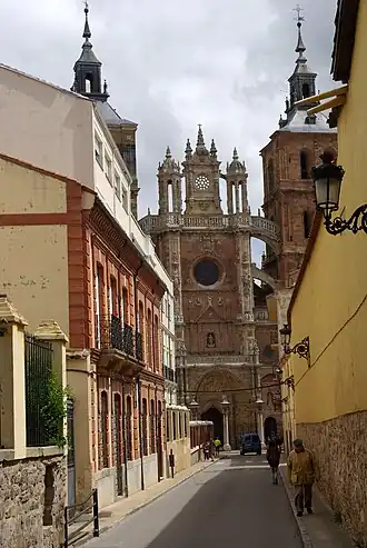 Astorga is a town in the Castile and León region of northern Spain, 43 km southwest of León city. It has a well-preserved old centre and is a stop-off on the pilgrimage route to Santiago. In 2021 the population was 10,600.