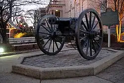 - π Double Barreled Cannon. Corner of College and Hancock (outside City Hall). What better way to defeat the Yanks than to give it to them with both barrels! This cannon was designed to shoot twin cannonballs connected by a chain. The designers didn't take into account the impossibility of synchronization, and the cannon was never used.