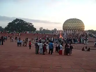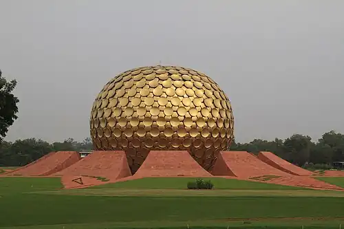 Auroville is a small town 6 km north of Pondicherry. This town was a vision of The Mother from Sri Aurobindo Ashram at Pondicherry as it's an international town. She envisioned a town where unity will be celebrated and all will have a spiritual vocation. In July 2010, 2200 people from 43 different countries were living in the city. About 40% were Indians (more than 15% are French and 15% are German).